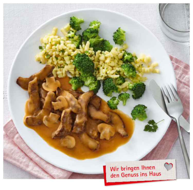 Alle Tiefkühlgerichte erhalten Sie im "á la carte-System", das heißt Sie wählen Ihren Menüwunsch aus unserem aktuellen Menükatalog mit über 200 Einzelgerichten auf 55 Seiten. Jeder Kunde kann damit selbst in aller Ruhe zuhause entscheiden, was und wann er essen möchte.